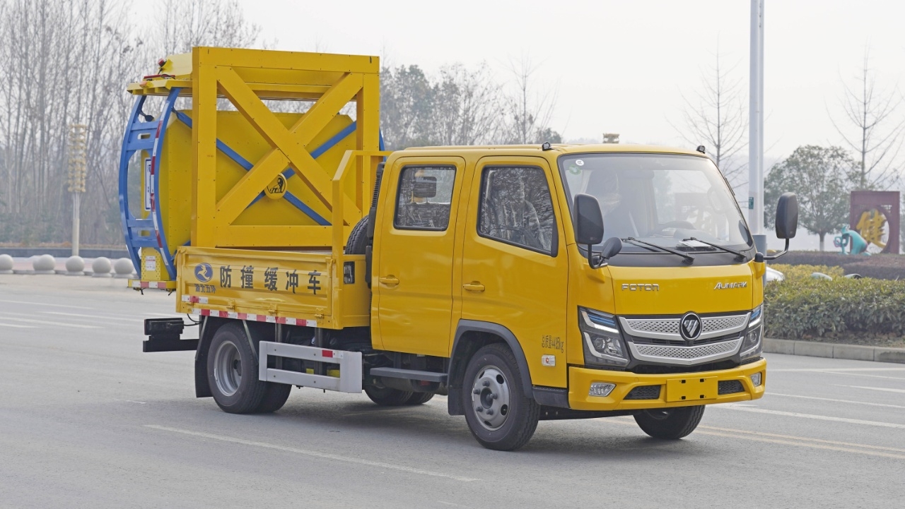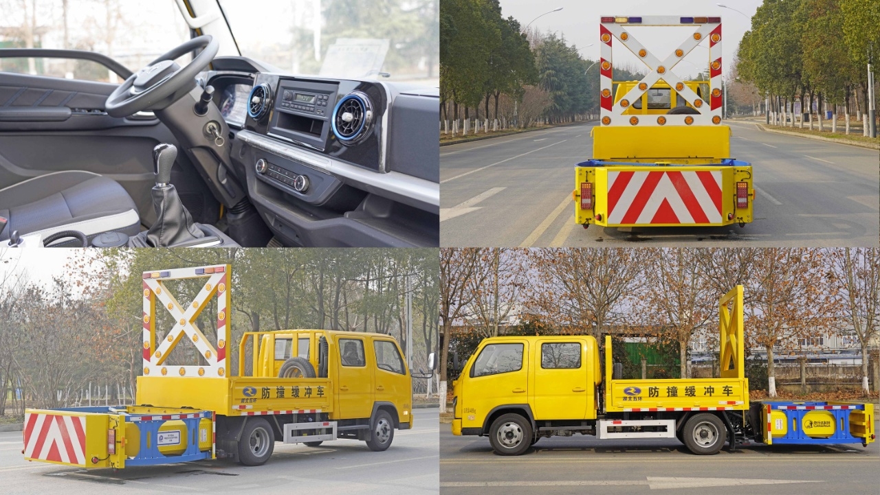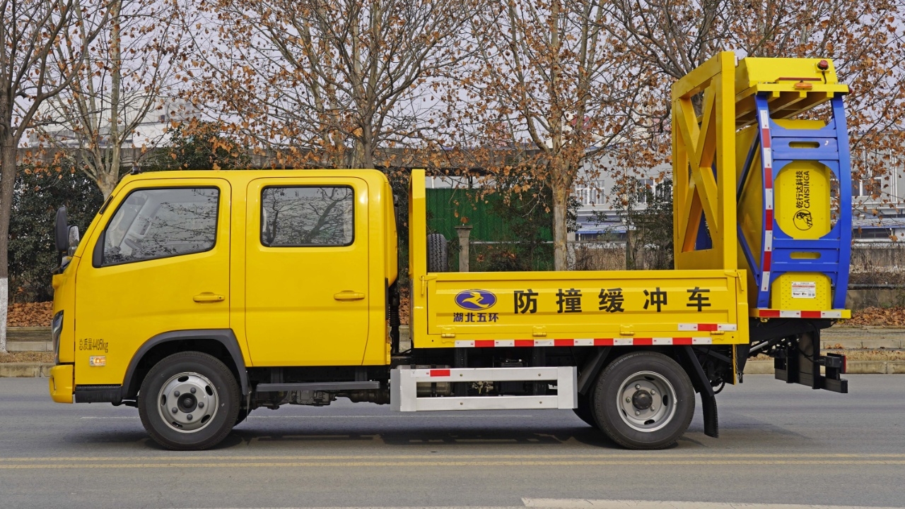 上裝配置:采用Q235國(guó)標(biāo)優(yōu)質(zhì)板材制作,貨箱尺寸:2580mm長(zhǎng)*1950mm寬*450mm高,箱體后部防撞緩沖模塊包采用國(guó)際知名技術(shù)產(chǎn)品70K防撞緩沖模塊,防撞緩沖吸能模塊主要由車載防撞緩沖墊和導(dǎo)向標(biāo)志架組成,充當(dāng)施工作業(yè)車輛后方的緩沖衛(wèi)士。如若發(fā)生追尾事故,能夠在肇事車輛和前方施工作業(yè)區(qū)域之間構(gòu)建一個(gè)緩沖區(qū)域,通過機(jī)具結(jié)構(gòu)變形吸收撞擊的能量,最大限度地降低被保護(hù)人員及設(shè)備遭到碰撞的幾率。