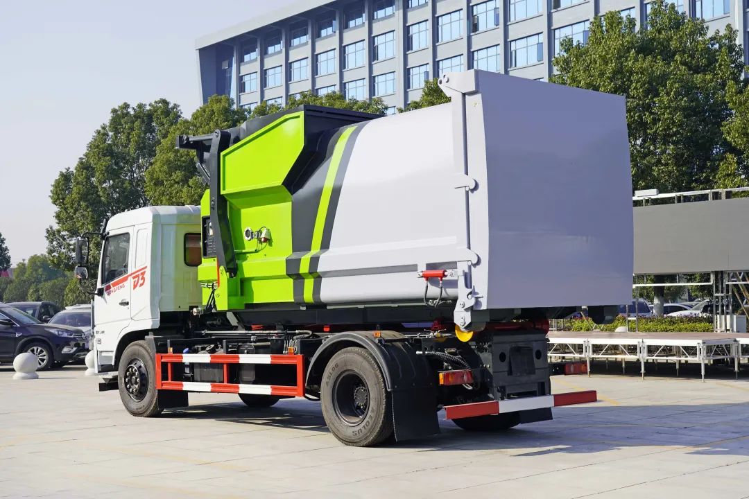 鉤臂垃圾車采用高新設(shè)計(jì)可擺得鉤臂,一車可帶多個(gè)大廂,裝卸方便,實(shí)現(xiàn)車廂的二次吊裝并使機(jī)構(gòu)最為省力,具有結(jié)構(gòu)簡單,操作穩(wěn)定方便,高效率裝卸,節(jié)省人力等優(yōu)點(diǎn)。鉤臂垃圾車可根基用戶要求配備若干個(gè)垃圾轉(zhuǎn)運(yùn)箱。轉(zhuǎn)運(yùn)箱可作為一個(gè)簡易、美觀、環(huán)保的垃圾轉(zhuǎn)運(yùn)站,最大限度提高了車輛的使用效率。