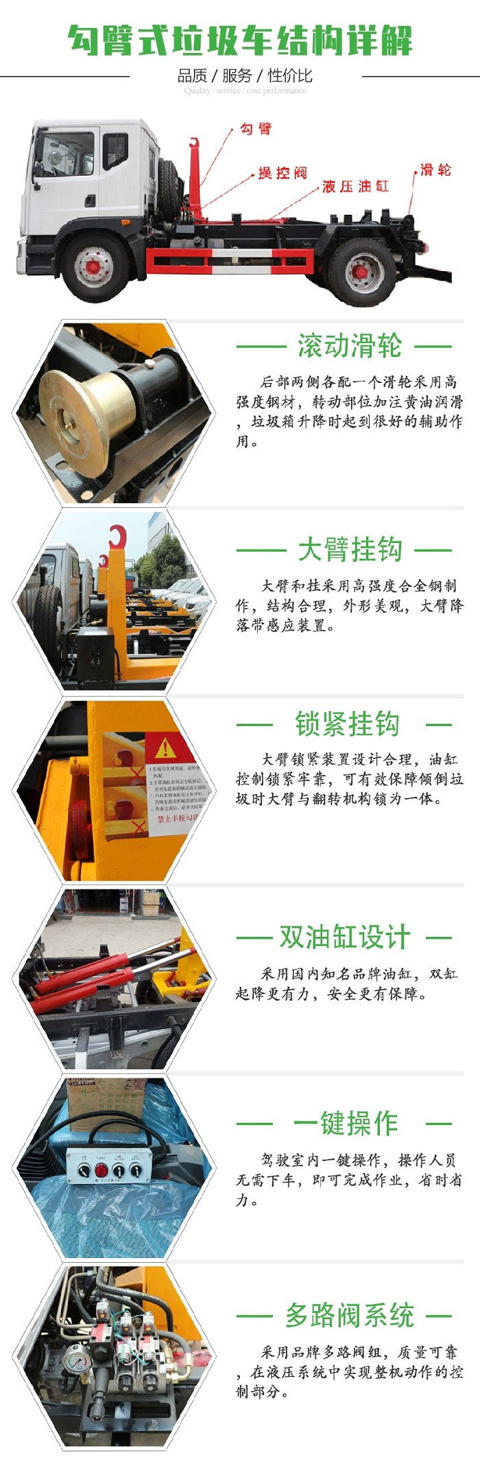 勾臂式垃圾車(chē)車(chē)型特點(diǎn):
