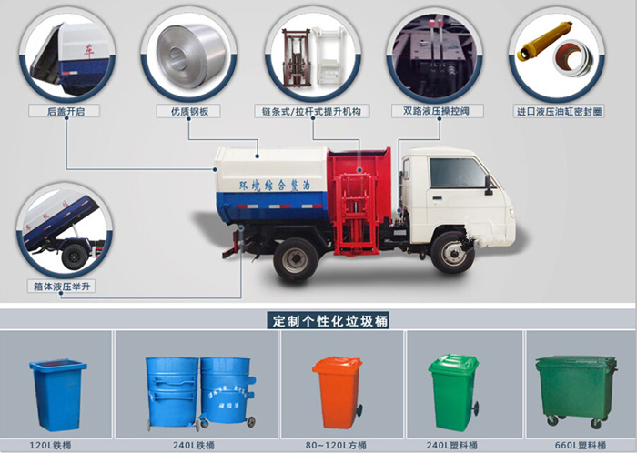 1、密封環(huán)保性:采用獨特的高位傾翻的全封閉垃圾箱結(jié)構(gòu),杜絕了垃圾和污水沿途灑漏的現(xiàn)象,避免了運輸過程中的二次污染。