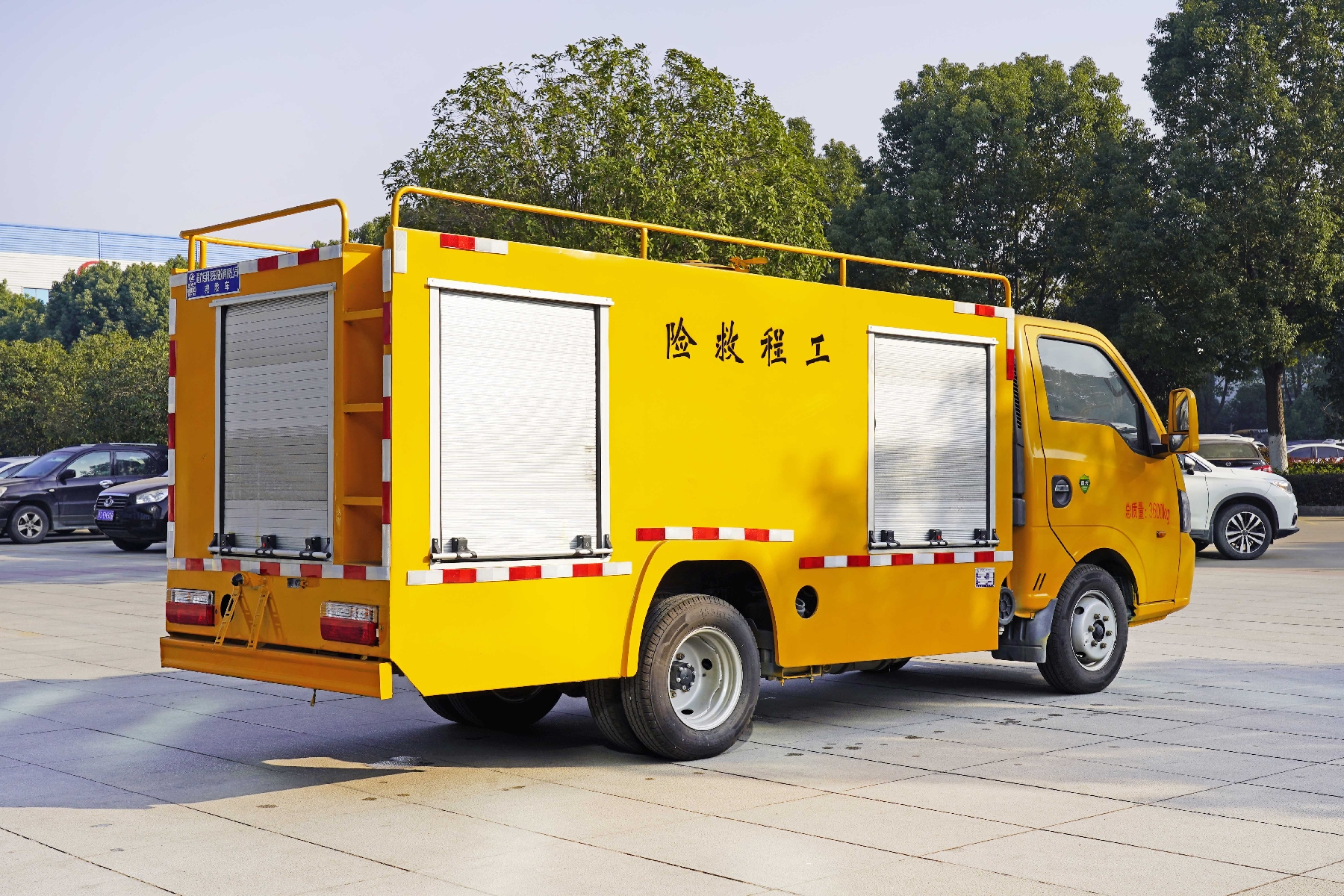 該車(chē)配置柴油發(fā)電機(jī)組,車(chē)載水泵、控制系統(tǒng)等,可滿(mǎn)足深水區(qū)域搶險(xiǎn)救援工作,保障地下車(chē)庫(kù)和城市低洼地段防汛排水;側(cè)面防護(hù)裝置材質(zhì)采用Q235,為裙邊結(jié)構(gòu),后面防護(hù)裝置材質(zhì)采用Q235,連接方式為螺栓連接,斷面尺寸120×50mm,后防護(hù)離地高度:390mm;ABS型號(hào)/廠(chǎng)家:APG3550500A/浙江亞太機(jī)電股份有限公司.該車(chē)選用2800mm軸距.選裝限速裝置,限速80km/h.選裝內(nèi)部樣式.
