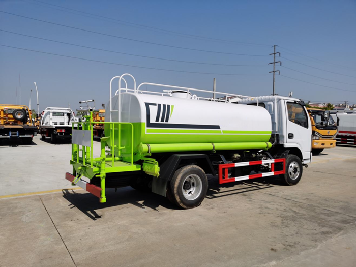 改裝配置:罐體用優(yōu)質(zhì)碳鋼材料,罐內(nèi)隔板具有防波作用,以減低汽車行駛時(shí)罐體液體的沖擊。水罐實(shí)際容積5.1方,整車帶一個(gè)專用灑水泵(垂直最大吸程6米),灑水寬度14米,射程28米。多功能灑水車配備2個(gè)前沖(噴)(能將路面泥巴、塵土、垃圾沖干凈);2個(gè)后灑(能均勻地將水灑在路面,一次灑水寬度14米)、2個(gè)側(cè)噴(花灑)(能均勻地將路旁綠化帶澆灌)、帶1個(gè)后工作平臺(tái),平臺(tái)上安裝1個(gè)綠化灑水高炮(灑水炮可全方位旋轉(zhuǎn),可連續(xù)調(diào)成直沖狀、大雨、小雨、毛毛雨,霧狀可調(diào)節(jié)沖洗高大樹(shù)木),引水時(shí)間<5min,流量90m3/h。帶1個(gè)消防接頭,帶1個(gè)自流閥,1個(gè)過(guò)濾裝置、人性化爬梯及側(cè)防護(hù)欄,安裝灑水音樂(lè)喇叭。