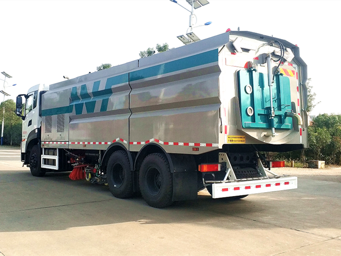 上裝配置:帶2個(gè)中置掃盤,康明斯170馬力副發(fā)動(dòng)機(jī);三洋馬達(dá);高壓水泵(前沖/側(cè)噴/中噴/后噴霧/沖洗水槍/垃圾箱自潔裝置);高壓路沿清洗噴頭,低壓泵(前沖);不銹鋼垃圾箱;不銹鋼管高壓管路;控制器;控制箱;PLC一鍵控制;尾部LED箭頭燈;垃圾箱、水箱均帶防溢低水位報(bào)警裝置;倒車及洗掃狀態(tài)室內(nèi)監(jiān)視器。20m高壓沖洗卷盤。