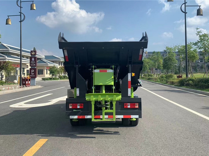 2、高效性:采用結(jié)構(gòu)簡單,性能可靠的后翻轉(zhuǎn)上料機(jī)構(gòu),上料機(jī)構(gòu)單次上料循環(huán)時間短,運(yùn)行效率高,在狹窄街道和小區(qū)作業(yè)更加方便,翻桶架和投料口的優(yōu)化設(shè)計避免了上料時的垃圾灑漏。