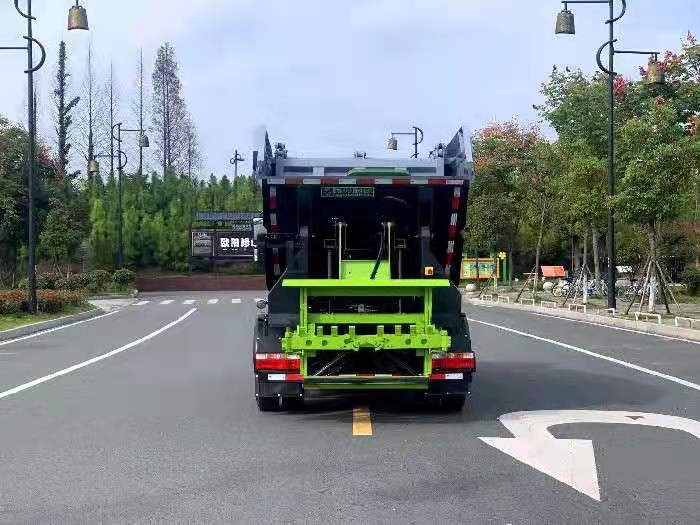3、壓縮裝置:采用滑板及刮板壓縮裝置,通過(guò)滑板及刮板對(duì)垃圾進(jìn)行壓縮,極大的提高垃圾裝載量,降低運(yùn)營(yíng)成本。