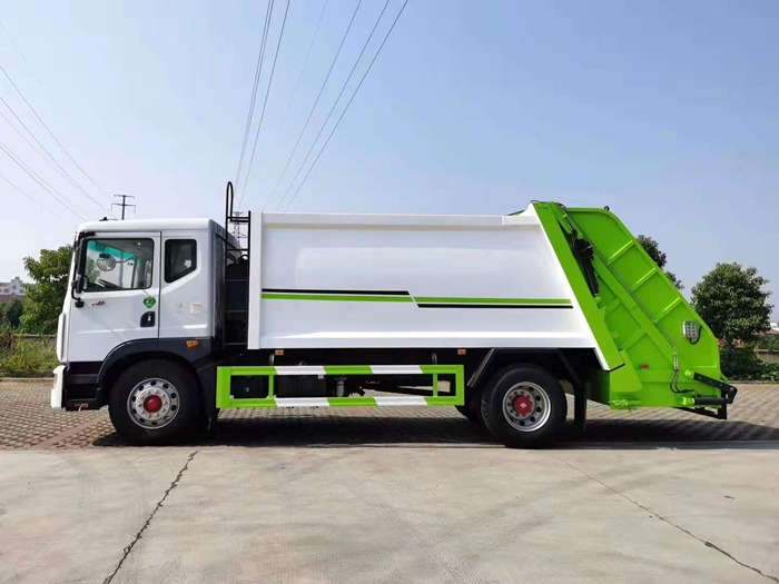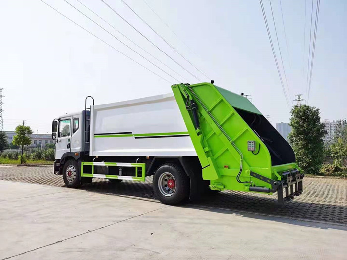 弧形箱體,優(yōu)質(zhì)Q345錳鋼制作,箱體滿焊(自動(dòng)焊),10-12立方容積,邊四底五,尾部和側(cè)邊雙污水箱,星光油缸,高密度液壓油管,江蘇揚(yáng)州中梅多路閥,合肥皖液油泵,填充器舉升油缸帶鎖緊裝置,帶PLC電控系統(tǒng)(手動(dòng)自動(dòng)兩用)標(biāo)配掛桶翻轉(zhuǎn)機(jī)構(gòu)或垃圾翻轉(zhuǎn)斗,可掛120升和240升塑料桶或鐵桶,尾部帶照明燈,方便夜間操作使用。