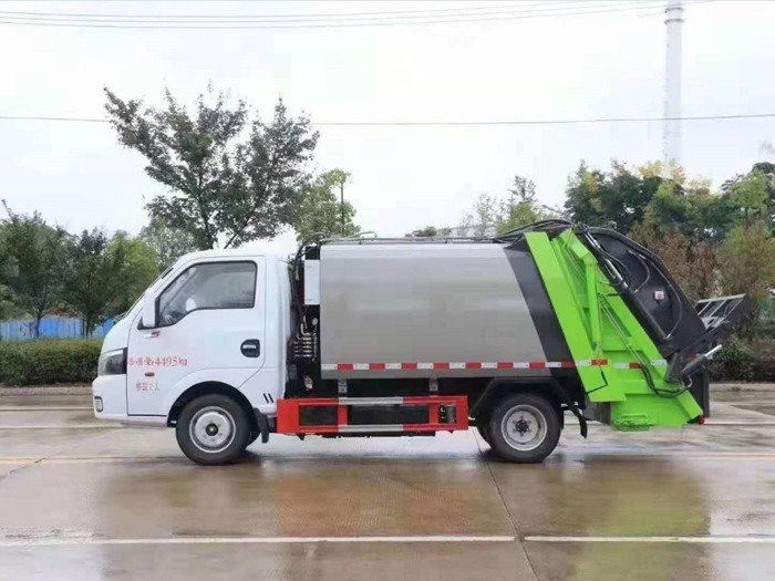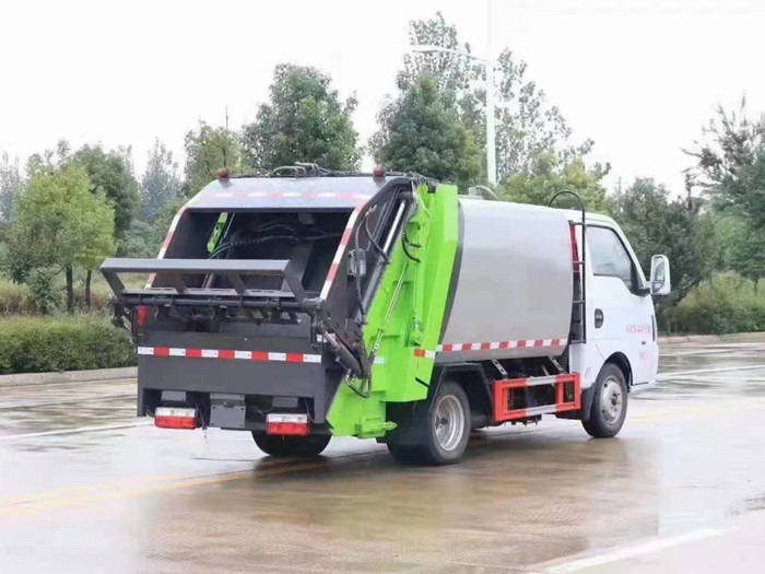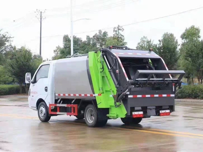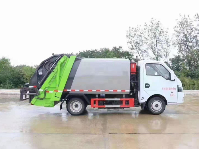 采用Q345高強(qiáng)度錳鋼板制作,廂體容積:3.5立方米,可裝9立方散裝垃圾,壓縮倍率2.5-3倍,壓縮后生活垃圾密度從0.36變?yōu)?.95以上,合肥長(zhǎng)源快速液壓泵,大流量快速手自一體多路換向閥,西門子PLC電控系統(tǒng),卸料時(shí)帶一鍵循環(huán)系統(tǒng),司機(jī)不下車可完成卸料工作,尾部 帶密封橡膠墊,可防污水滴漏二次污染。尾部選裝翻轉(zhuǎn)大落地斗裝置,選裝遙控器操作,讓你遠(yuǎn)離灰塵,干干凈凈工作。 國(guó)六藍(lán)牌凱馬4方壓縮垃圾車可選配后掛桶翻轉(zhuǎn)機(jī)構(gòu),三角斗,全密封斗,可掛國(guó)標(biāo)240升垃圾桶或660升垃圾桶。