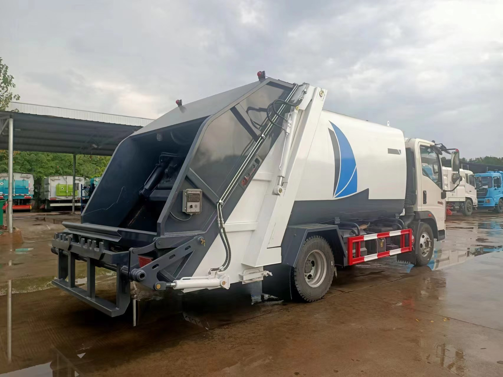 后裝卸式垃圾車又稱壓縮式垃圾車(以下簡(jiǎn)稱垃圾車)是用于城鎮(zhèn)袋裝、桶裝、散裝生活垃圾物的收集、運(yùn)輸、卸料作業(yè)的專用車輛。垃圾被刮滑機(jī)構(gòu)刮進(jìn)車廂,通過與推板之間的擠箱,使垃圾較高密度、較均勻地分布在車箱內(nèi),直至裝滿為止;該垃圾車的收運(yùn)方式是目前世界上廣泛采用的垃圾收運(yùn)方式,其專用裝置的功能均以汽車發(fā)動(dòng)機(jī)為動(dòng)力,通過液壓機(jī)構(gòu)手動(dòng)或電控來實(shí)現(xiàn)。車輛的箱體、裝填器又稱斗體及污水箱均采用優(yōu)質(zhì)炭鋼板全密封焊接結(jié)構(gòu),具有強(qiáng)度高、重量輕、不產(chǎn)生二次污染等優(yōu)點(diǎn)。