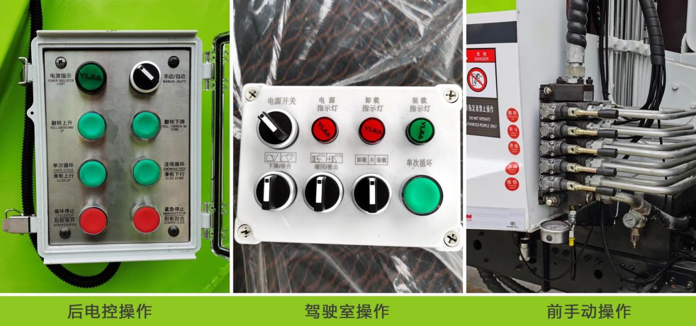 控制系統(tǒng):駕駛室內(nèi)操作和前后液、電一體控制,并采用進(jìn)口PLC(可編程序控制器)集成控制,通過設(shè)置邏輯回路保證各操作指令按順序執(zhí)行,實(shí)現(xiàn)滑板和刮板自動(dòng)循環(huán)工作。